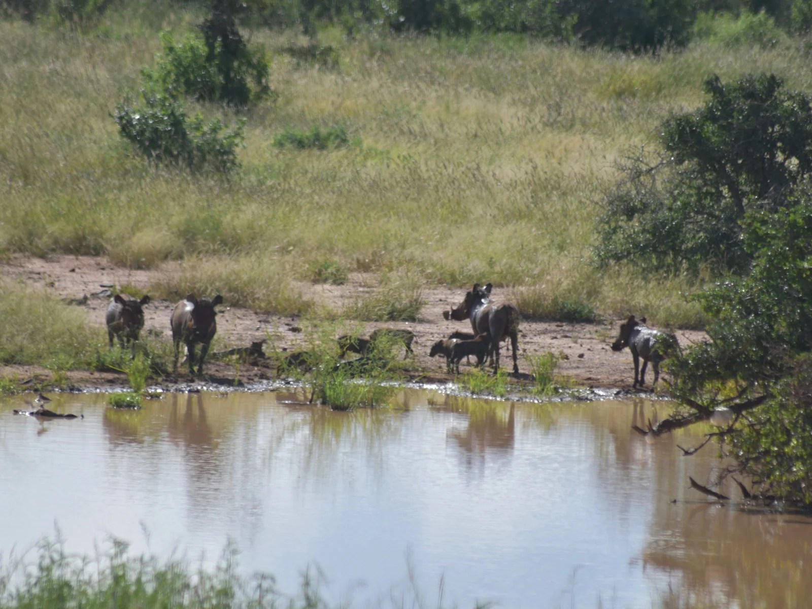 Gleich zu Beginn sahen wir Büffel, Warzenschweine, und Sträuße. Nach circa einer halben Stunden standen wir im „Stau“, da ein Auto im Schlamm stecken geblieben ist.