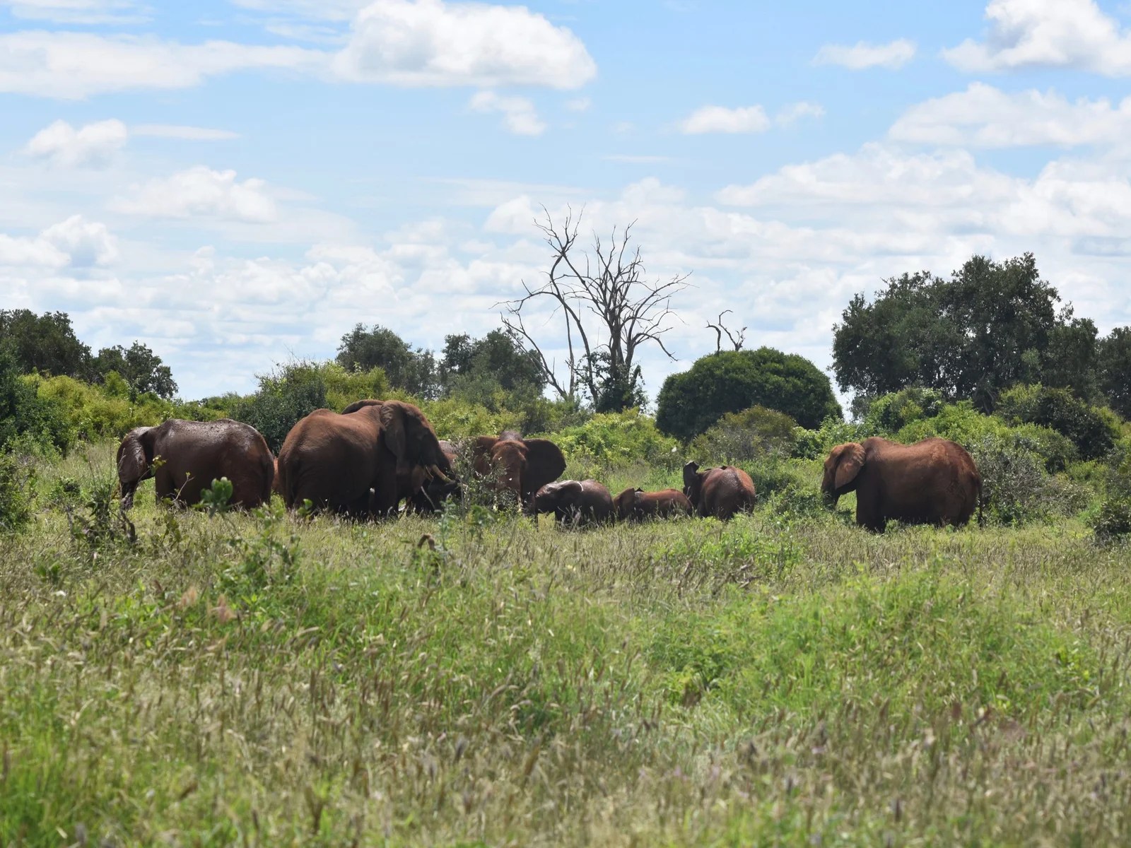 Es war unbeschreiblich dieses Gewühl, direkt ein paar Meter neben mir waren ungefähr 15 wilde Elefanten mit Babys. Was für prächtige Tiere! Sie stolzierten ganz langsam neben uns her.